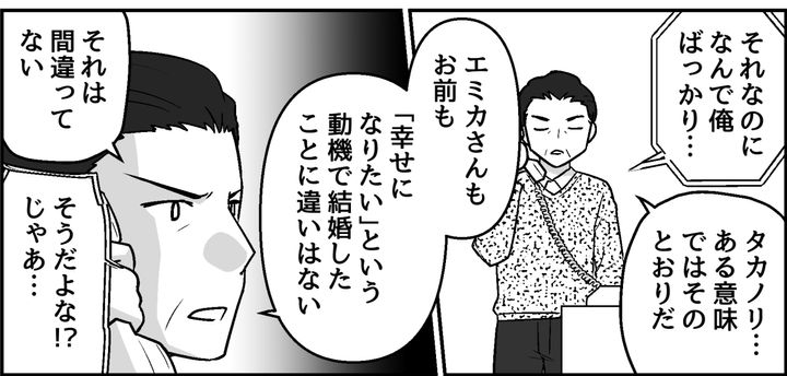 自分だけ責められるのは納得できない、俺はそう主張しようとした。しかし父からは言われた。「エミカさんが、本当に自分のためだけに結婚したと思うか? 自分が幸せになるのと同じくらい、お前のことを幸せにしようと思ってくれていたはずだ」