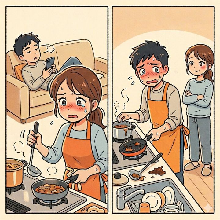 「そんなに完璧な手順が頭に入っているなら、今日から家事の全権をあなたに委任します」