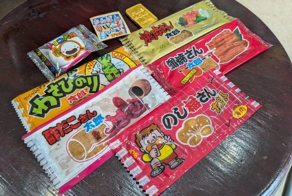 お菓子だけでなく、クジで遊べるのは、本当に昭和の駄菓子屋さんのようです。
