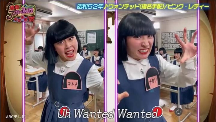 『ウォンテッド(指名手配)』を踊ったのは、顔芸が得意らしいkotoneとnagano。kotoneは、「“盗んだ心を返せ”という歌詞があったので、その強い気持ちを顔で表現してみました」とのことで、指名手配犯を追い詰めるがごとく険しい表情に。恐ろしい表情のまま、襲い掛かるようなポーズをカメラに向けた。