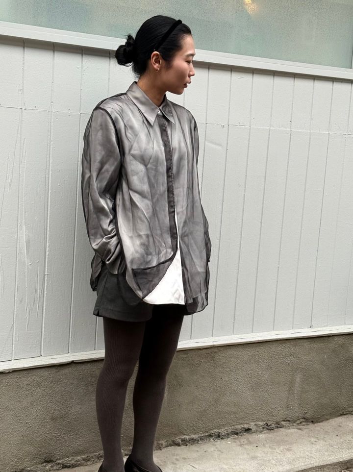 3. 【40代スナップ】シアー素材が重なった「ヴィンテージシャツ」で、即ドレスアップ!|モネさん