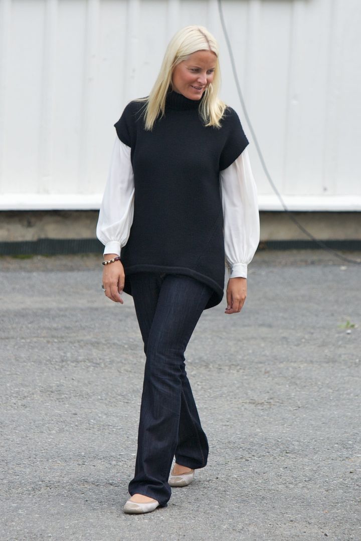 ノルウェーのメッテ=マリット王太子妃のデニムルックは、北欧らしいミニマルなスタイル! デニムもストレートシルエットのリジッドタイプと、正統派なチョイスです。