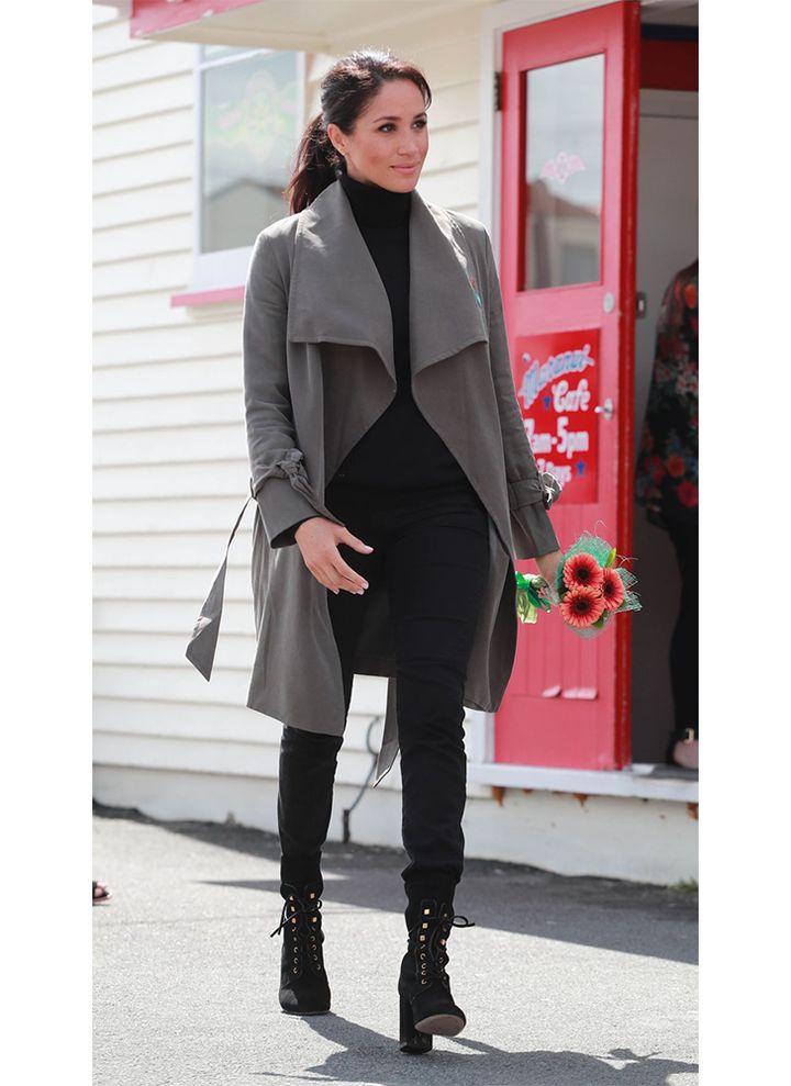 こちらは2018年、ニュージーランド訪問中の写真。この日は細身の黒デニムを使って、クールなモノトーンスタイルに仕上げていました。
