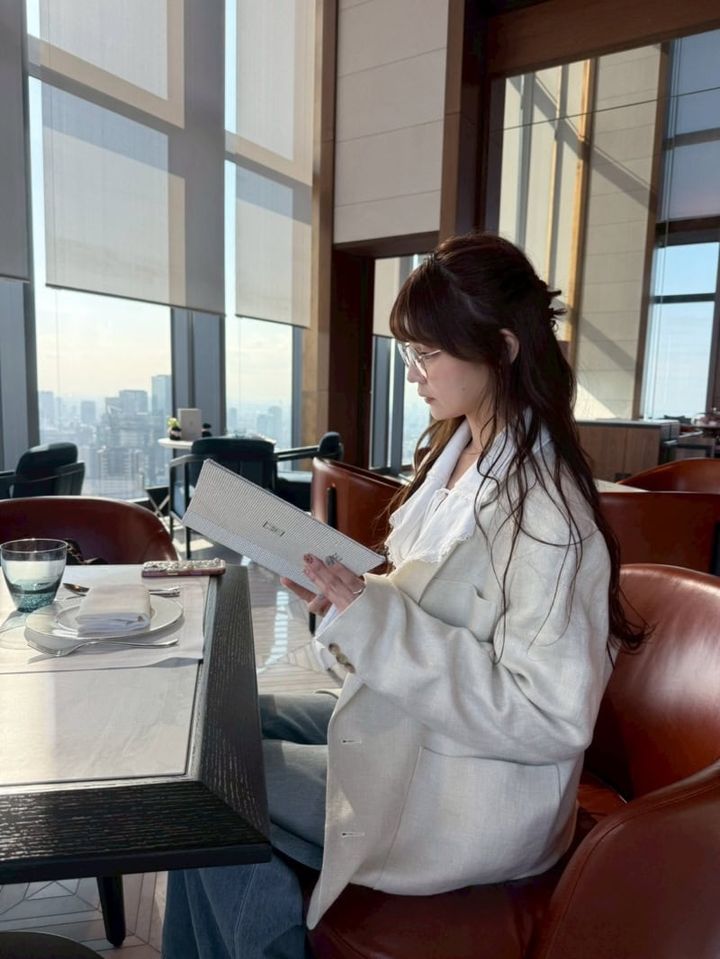 「ベーシックな着こなしの中に少しガーリーをプラスするのが今の気分。ジャケットにラッフルフリルブラウスをあわせて、エレガントなスタイルに。バッグやシューズでハイブランドを投入して、品格をプラスしています」(idem / ANUブランドディレクター・村田倫子さん)