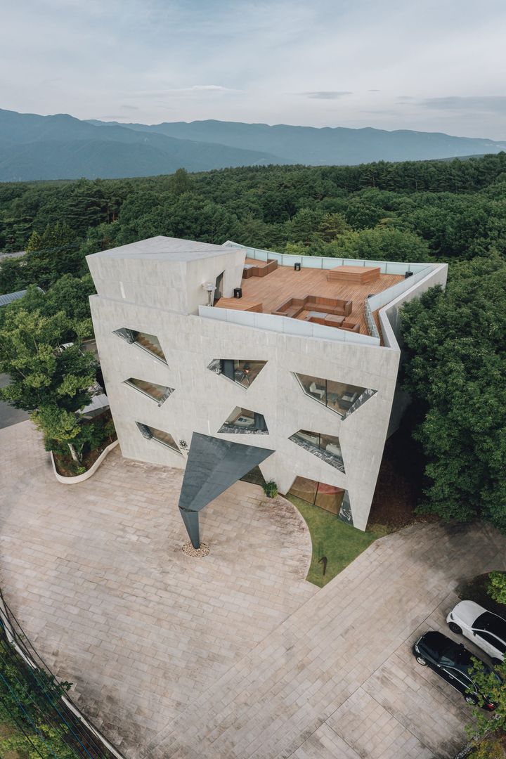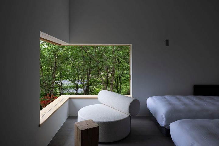 山梨県・八ヶ岳の森にある「ホテルキーフォレスト北杜(ほくと)」は、建築家の北川原温が手がけた、自然とアート、ふたつの美を一緒に味わえる全6室のスモールブティックホテル。
