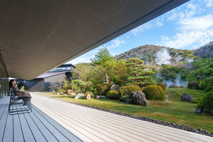 客室は、計4タイプ全39室。すべての部屋にテラスがあり、専属の庭師による手入れが行き届いた日本庭園と、白煙を吹き上げる雲仙地獄、その向こうの山々に面した造りとなっているため、麗しいパノラマをいつでも愛でられる。
