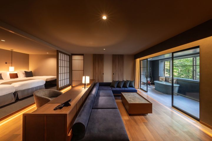 和洋室が6つ、和室が5つのラインナップで、最小の部屋でも58平方メートル、最大で250平方メートルもあるので、大家族やグループもゆったりと過ごすことが可能。