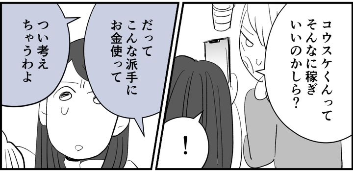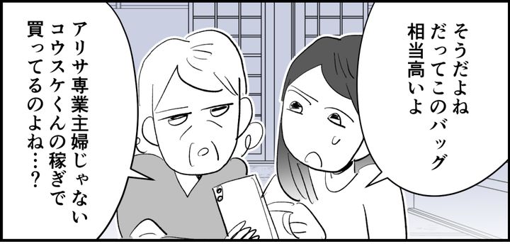 「アリサは専業主婦だし、コウスケくんの収入だけであの派手な生活が維持できるのかしらってつい考えてしまうのよ。夫婦でちゃんと計画を立てて使ってるなら私がアレコレ詮索しちゃいけないことだし、こんなこと言えないけどね」母も相当心配しています。