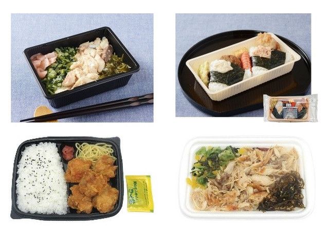 定番の「シーチキン®マヨネーズ」と「鮭」のおにぎりに、人気のおかず(ハンバーグ・鶏唐揚・磯辺揚げ・玉子焼・ウインナー)を添えた手軽に食べられるセットメニュー。