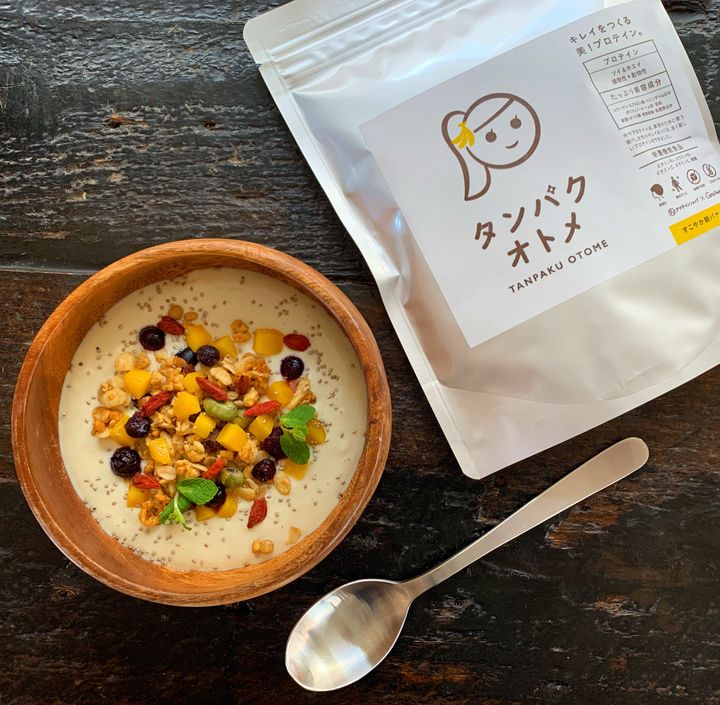 ビタミンなど25種の栄養も取れるプロテイン「タンパクオトメ」をヨーグルトに混ぜ、冷凍フルーツやグラノーラを乗せた食べ方が最近のお気に入り。 Hearst Owned