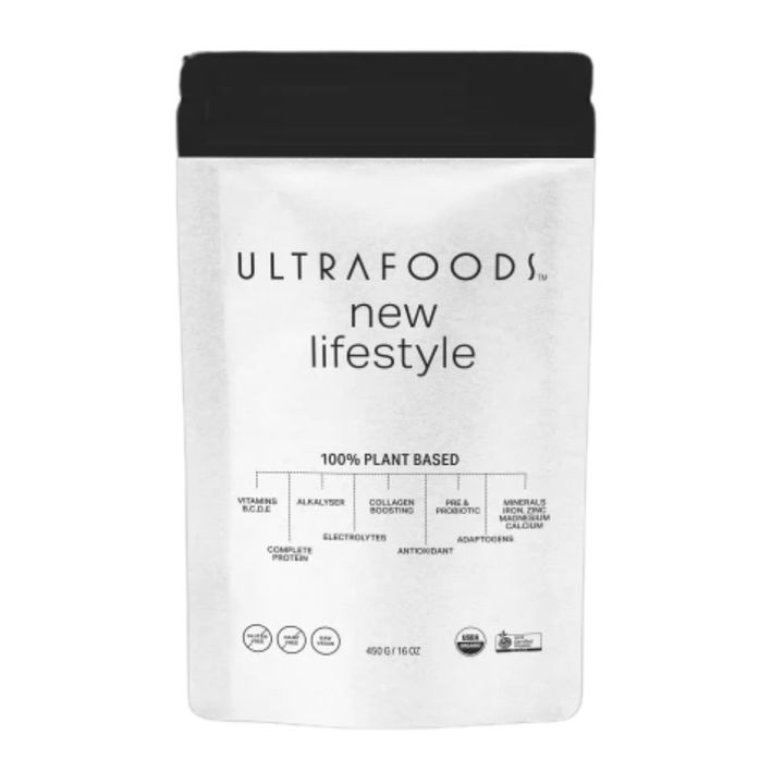 「プロバイオティクス配合のうえ、ビタミン、ミネラル、オメガ3、鉄分などの多様な栄養素を網羅」。天然原料のみを使い、1日の栄養素をカバー。ウルトラフーズ ニューライフスタイル 450g ¥9,129/ワングループ