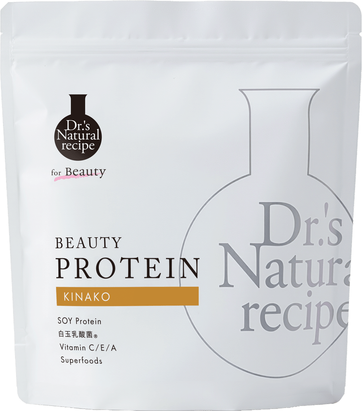 「プロテインで便秘になる人は植物性に替えるのも手。こちらは100%植物性のソイプロテイン。白玉乳酸菌® やプロバイオティクス、スーパーフードなどうれしい成分も入っています」。ドクターズ ナチュラル レシピ 美容プロテイン きなこ味 350g¥3,780/アンファー