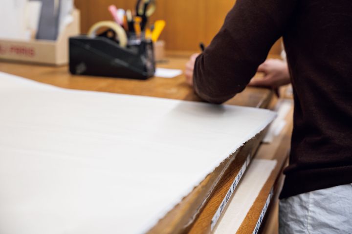 「アーティストとの対話が知識を豊かにする」と語るソフィー氏。専門スタッフが世界中の紙から最適な一枚を提案。