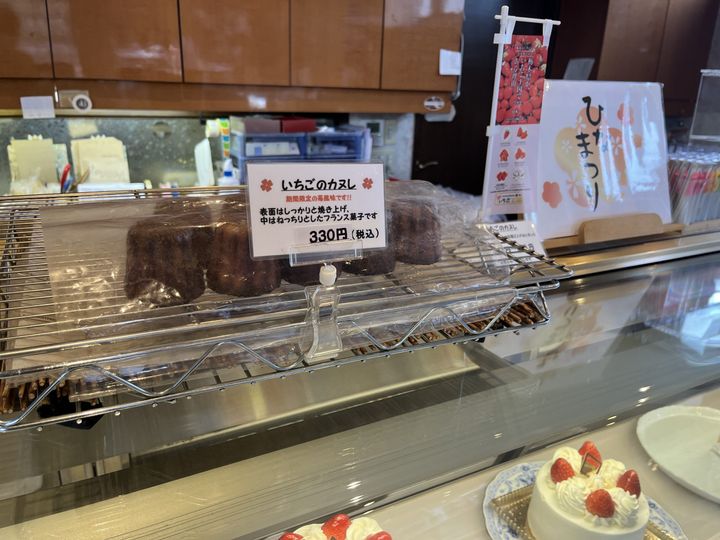 こちらは季節限定の商品、那須塩原市でいちごスイーツキャンペーンが開催されている間の販売だそうです。シーズンが終わると、従来のカヌレが販売されると店員さんにご説明頂きました。