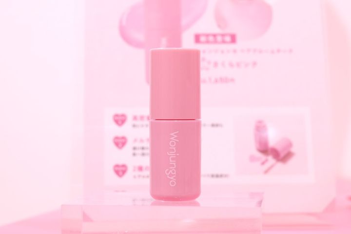 野口さんのメイクで使われているリキッドチーク「ウォンジョンヨ ベアブルームチーク 05 さくらピンク(1,650円)」は新色とのこと! 色名にもある“さくら”そのもののような淡くやわらかなピンクカラーです。