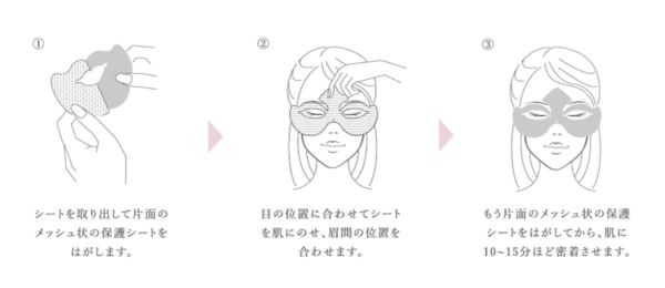 シート素材には、まるで第二の皮膚のように肌に密着するバイオセルロースシートを採用し、目まわりの凹凸やシワにもぴったりとフィットします。