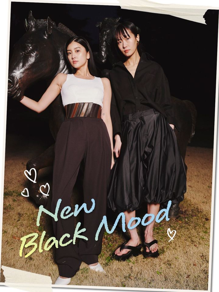 春こそあえて「黒」を極めるのがモード派の選択。素材違いのブラックを重ねて、シックな奥行きを演出するのが今っぽさの秘訣。
