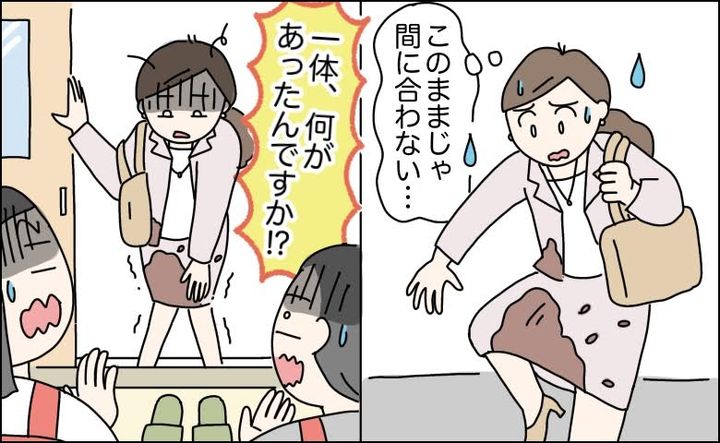 迷った末、私はコーヒーで濡れたスーツのまま、保育園へ向かうことにしました。