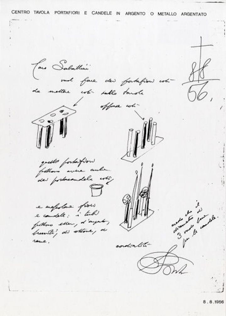 <写真>ジオ・ポンティによる、“ジオ・ポンティ オブジェ”を構成するアイテムの1つ、“ポンペイ”のスケッチ。