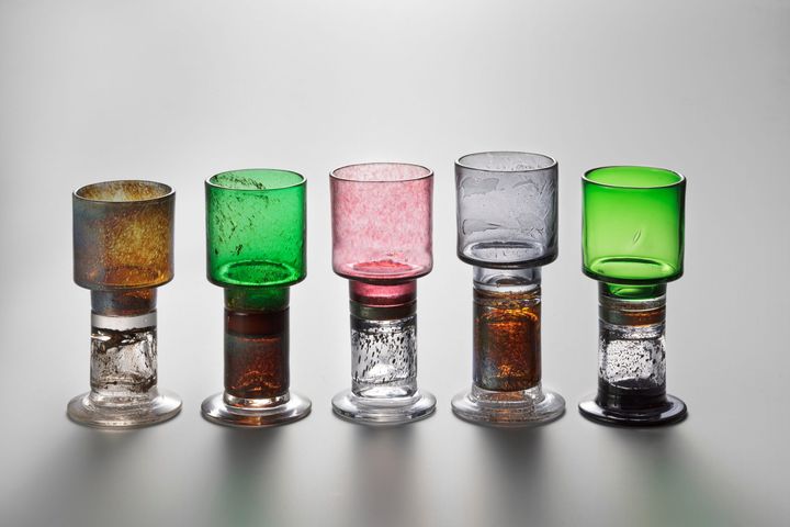 シンプルなガラス製品をデザインしていた一方で、芸術作品としてのアートガラスも数多くのこしたフランク。ガラス職人らと共に技法を開発して制作したこれらの作品は、ガラスの造形に新しい表現をもたらした。