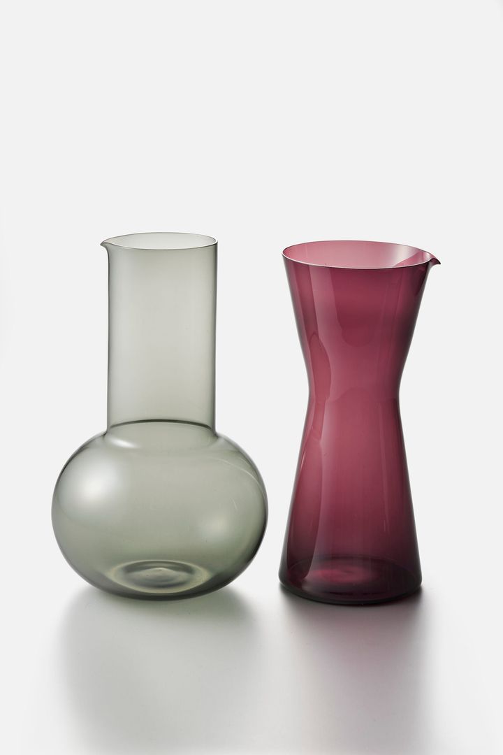 <写真>カイ・フランク《1621》(左)1955年、《1610》(右)1954年 カラフェ ヌータヤルヴィ・ガラス製作所