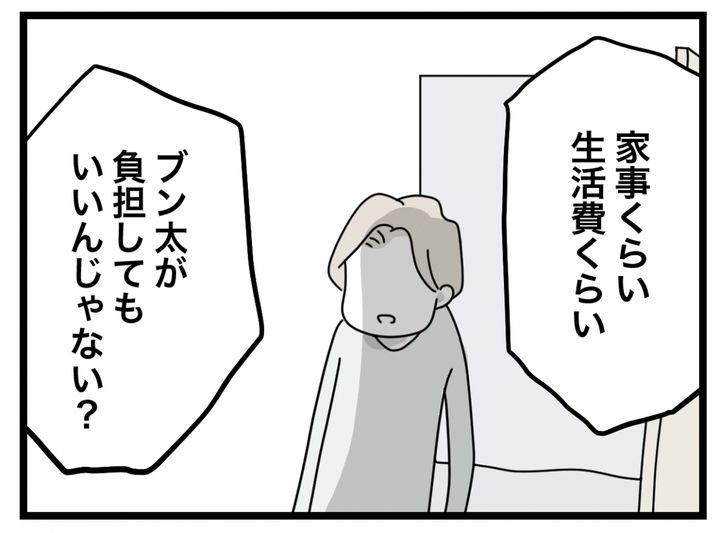 体調が悪い中、マチ子は必死に食事を作って冷蔵庫に入れておいた。ブン太はその食事が「手抜きすぎる」「不公平だ」と文句タラタラ。ついにマチ子は「いちいちうるせぇんだよ!この半分野郎!」と怒鳴った。