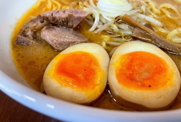 わぁぁあー美味しそう~~!! 食べる前からほっぺが落ちそうです。 「純すみ系」と聞いていたので、まずは味噌! ということで、味玉みそが着丼。 ふわりと湯気が立ち上り、味噌と生姜の香りが一気に広がりました。