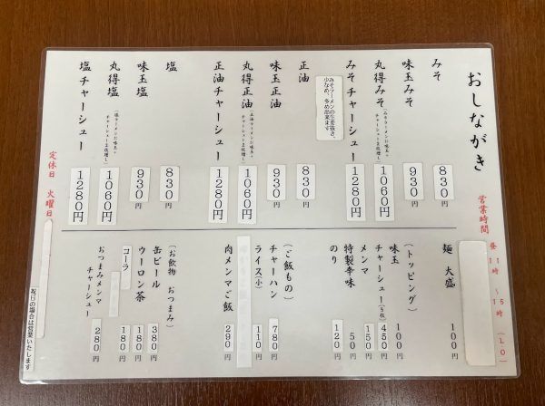 詳しいおしながきはこちらです。 味玉入りも気になるし、肉メンマご飯も気になる…! 今日はどれにしようかな~♪