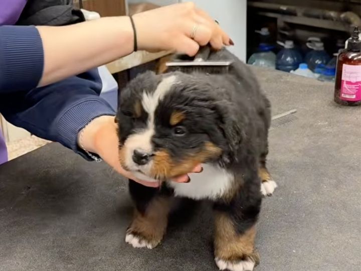 「お風呂は怖くないよ」優しい声掛けに安心してウトウト♡ バーニーズの子犬さんのバスタイム