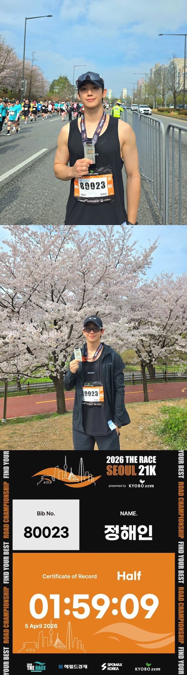 俳優のチョン・ヘイン(38)がハーフマラソンに挑戦し、見事に完走を果たして健康的な近況を伝えた。