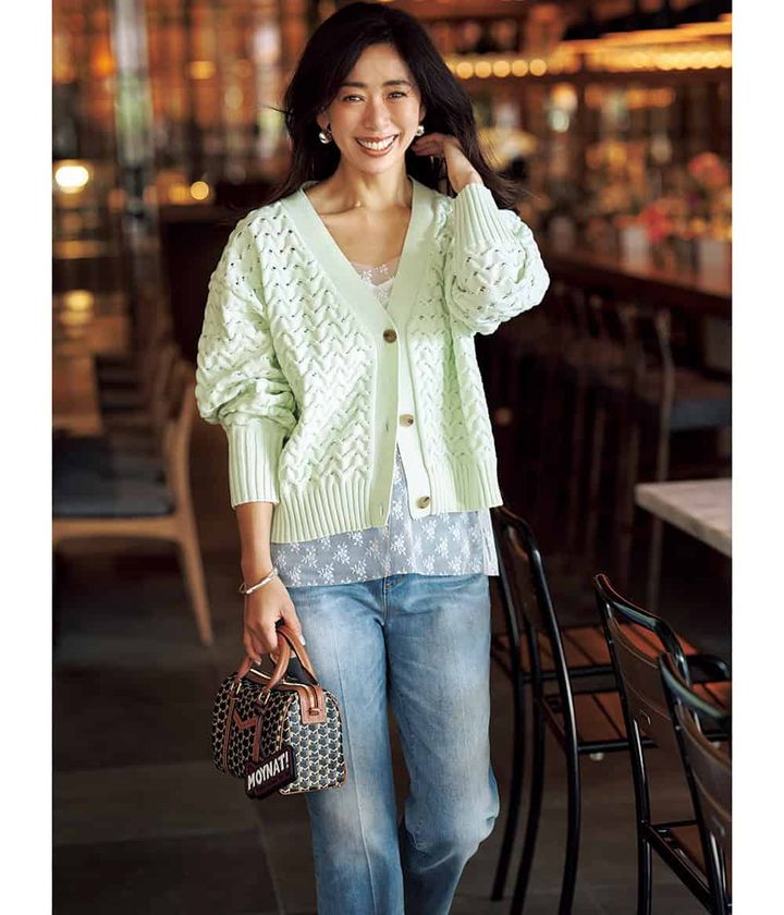 3. 40代の普段着カジュアルは【キレイ色カーデ】で即・おめかし感!垢抜ける〈旬カラー〉3選