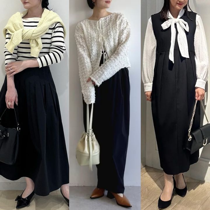 はじめましての場や、多くの人が集まる場に行くときは、やっぱり定番のモノトーンコーデが安心ですよね。やわらかく好印象に仕上がる、ほんのり甘めなモノトーンコーデをご紹介します。