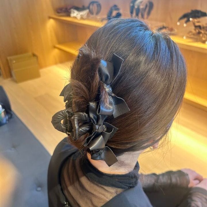 リボンがたくさんついたボリューミーなクリップ。Leather Ruban Clip in Black 8800円(TRESSE https://tresse.jp/)