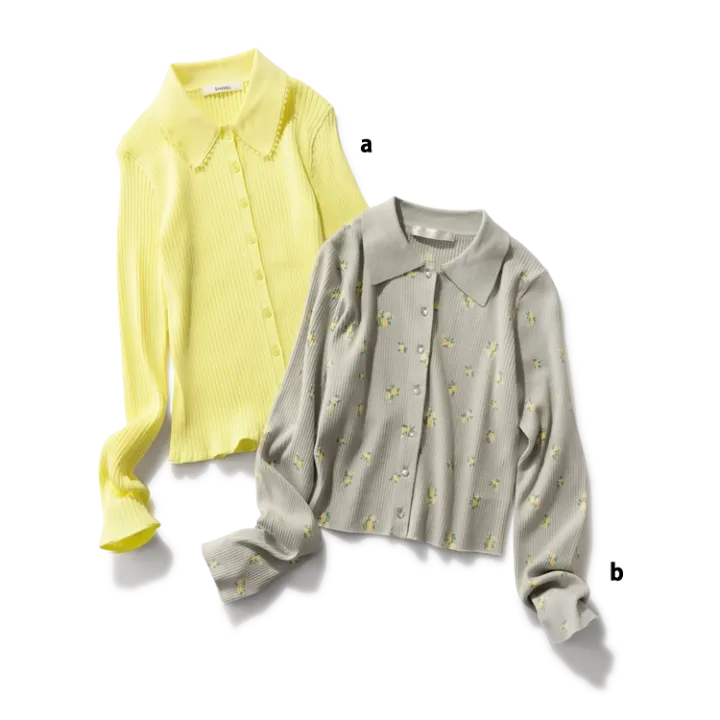 【a】イエローニットカーディガン 9,900円/SNIDEL ルミネ新宿2店