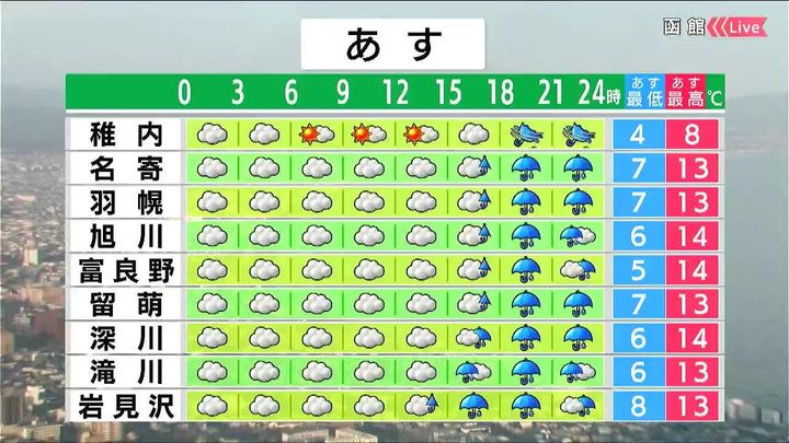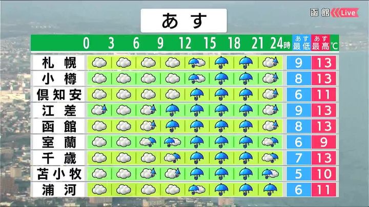 ・あすの札幌の朝昼晩の天気