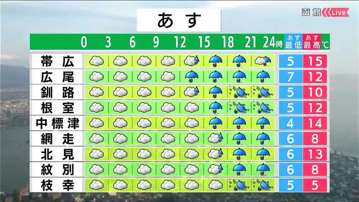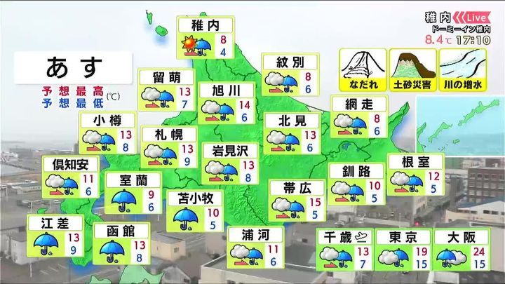 ・あすの北海道の天気と気温