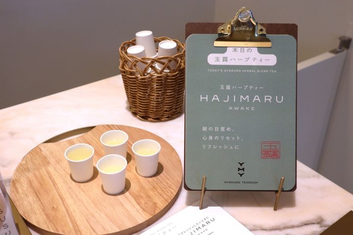 香りや試飲を通じて味わいを楽しめるのはもちろんのこと、YMYの玉露ハーブティーには「HAJIMARU」「YASURAGU」「MUKIAU」など過ごしたい気分に寄り添うネーミングがされていることも魅力の一つ。リフレッシュしたいのか、集中したいのか……と自分の感情と向き合っていると、自然と心が落ち着いてきます。