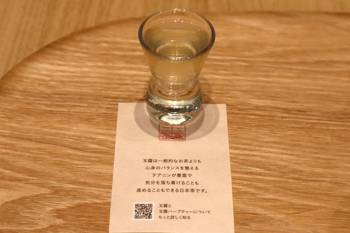 また、イートインではショットサイズの玉露も味わえます。発芽期に3週間「覆い」で日光を遮ることで、心身のバランスを整えるテアニンが豊富に蓄えられる玉露は、やすらぐリフレッシュタイムにぴったりなのだとか。手間暇のかかった柔らかい甘味が、すっきりと心と喉をうるおしてくれます。