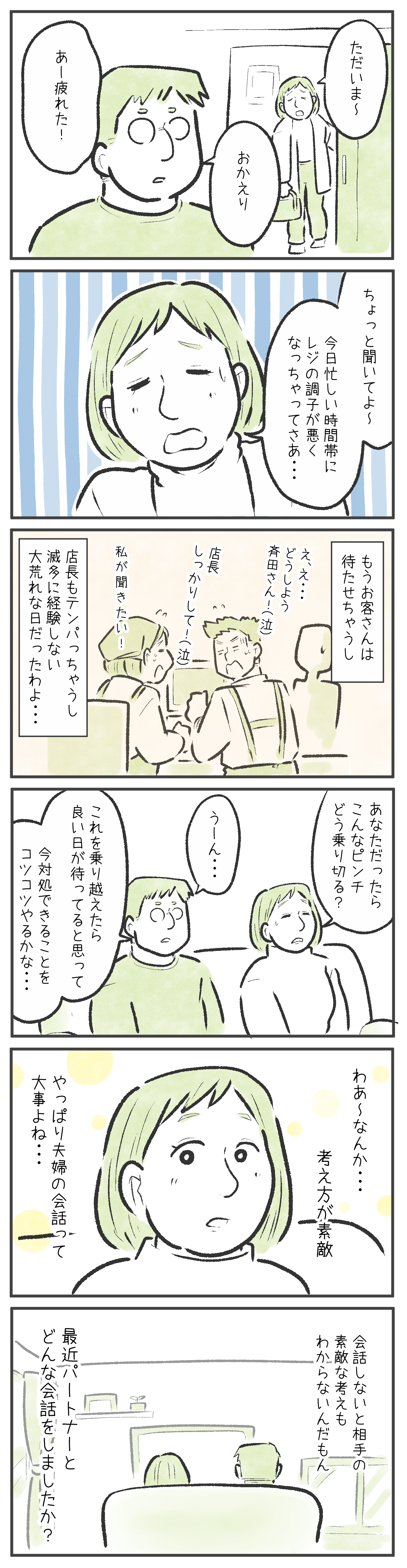 でもそれだけの会話で一日が終わると、たくさん会話したはずなのに、なんだか心はすれ違ったままだったりします。