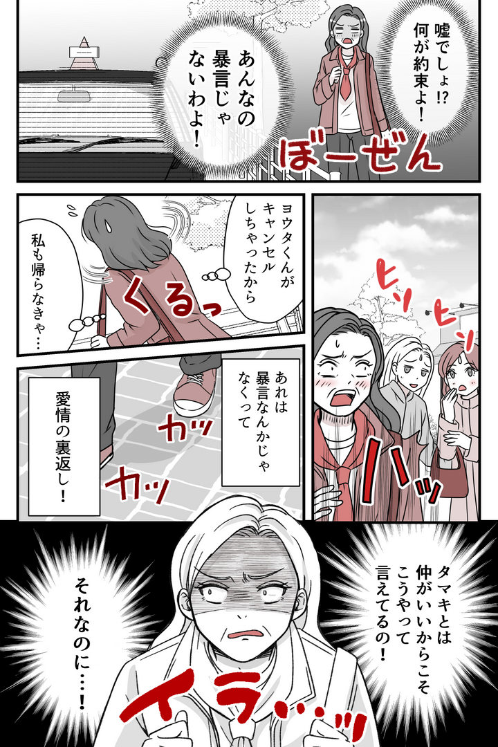 しかし旅行先の激混みカフェでイライラした私は、つい娘夫婦に当たり散らしてしまいました。いつもの軽口の延長のつもりだったのです。ところがヨウタくんは私の言葉を聞くや否や、本当に宿をキャンセル。タマキを連れて帰ってしまいました。