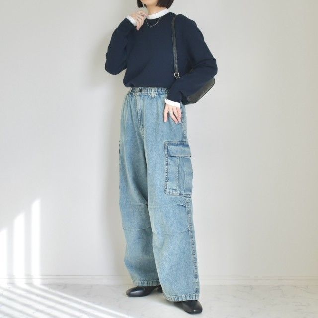 ネイビートップスに合うボトムス3|ブルー(デニム)