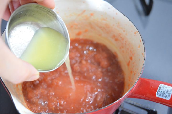 水分がなくなってきたらレモン汁を入れて沸騰させ、火を止める。