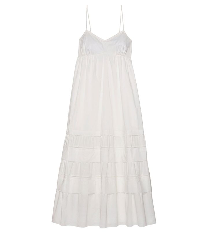 シンプルなギャザー以外の飾り気を削ぎ落とすことで、究極のイノセンスを表現したキャミワンピース。あえて1枚で纏う潔さが、今季の気分。ワンピース¥46,200(kate spade new york/ケイト・スペード カスタマーサービス )