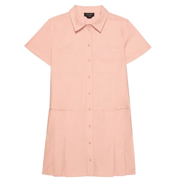 スクールガールのようにトラッドなポロドレスを、甘過ぎないサーモンピンクでノスタルジックに表現! ワンピース¥36,300(全てkate spade new york/ケイト・スペード カスタマーサービス )