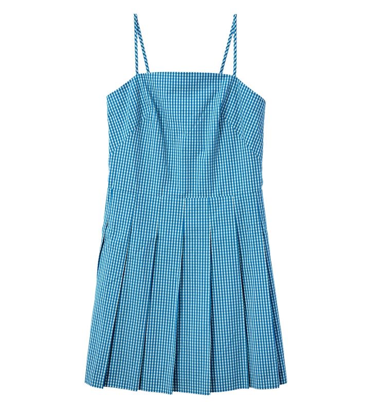 まるでテニススコートのようにスポーティな雰囲気を持つキャミワンピースは、ブルーのギンガムチェックが70年代風レトロな空気感。厚底サンダルを合わせて、Y2Kに楽しむのもあり。ワンピース¥47,300(kate spade new york/ケイト・スペード カスタマーサービス )