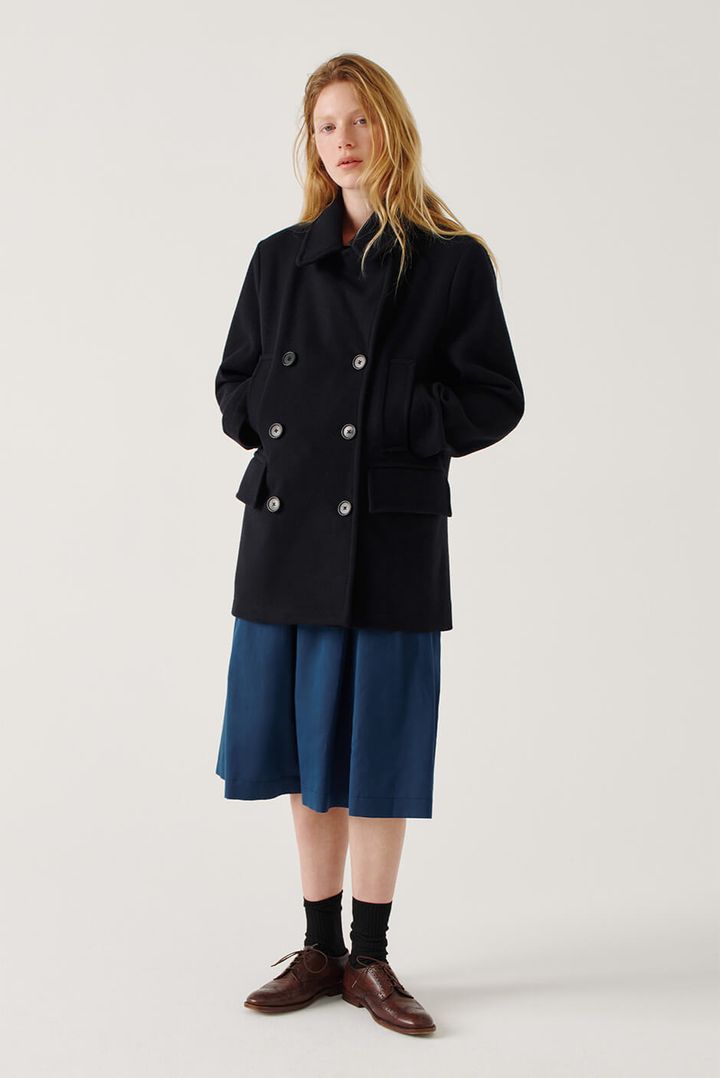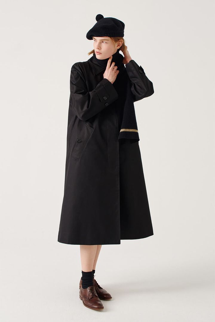 アウターウェアも引き続き軸となり、ヘリンボーンウールの裏地を備えたギャバジンのラグランマック、メルトン素材のリーファーコート、ゆとりのあるダブルブレストのアーカイブマックなどが揃う。