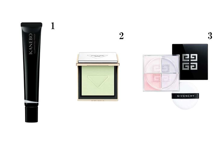 1.カネボウ イルミネイティングプライマー SPF22・PA++ 30g ¥4,950/カネボウインターナショナルDiv. 2.プラダ リセット セッティング パウダー ¥14,300/プラダ ビューティ 3.パルファム ジバンシイ プリズム・リーブル(ルース パウダー) No.16 ¥8,250(限定)