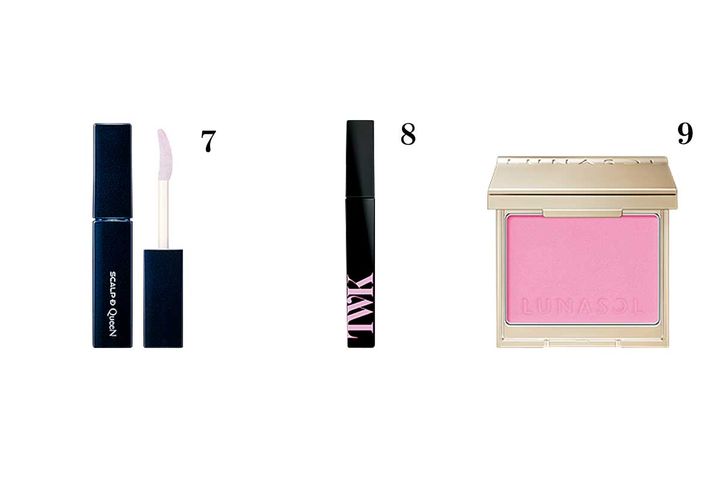 7.スカルプD アイラッシュセラム クイーン ¥8,800/アンファー 8.TWK シン ピュアブラック マスカラ ロング+ ¥5,940/FTC 9.ルナソル カラーリングブリーズ 01 ¥4,840/カネボウ化粧品