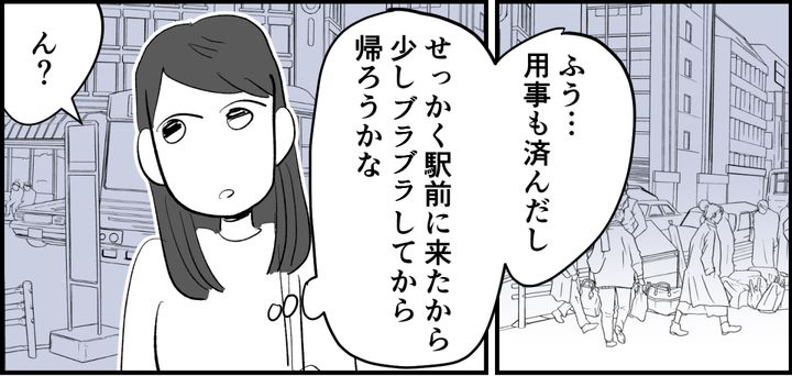 それから数週間後、私は用事があって駅前まできていました。用事を済ませてブラブラしていると、まさかの人物を見つけてしまったのです。思わず小さな声が出ます。私の視線の先には、周囲をひどく気にしながら慌てた様子のアリサの姿がありました。