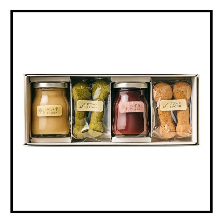 「最中で有名な銀座の名店「空也」の5代目・山口彦之さんが立ち上げた、和菓子やあんの魅力をより広く伝えるブランド。瓶入りのあんこジャム『ほし』とスプーン型クッキーのセットで、そのまますくってあんこを楽しめます。『ほし』は全4種のうち好きな2種を選ぶことができ、特に注目したいのは、豆の皮を濾すことなく、すべてすり潰してなめらかに仕上げた『○あん』シリーズ。素材を丸ごと使うことで、栄養も余すことなく味わえます。『スプーンクッキー』も2種から選べ、公式サイトで購入すると風呂敷包みで届けられるため、贈り物にもぴったり」と平岩さん。